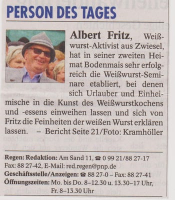 Ein Erlebnis der besonderen Art mit dem "Bayerischen Weißwurst Botschafter" höchstpersönlich