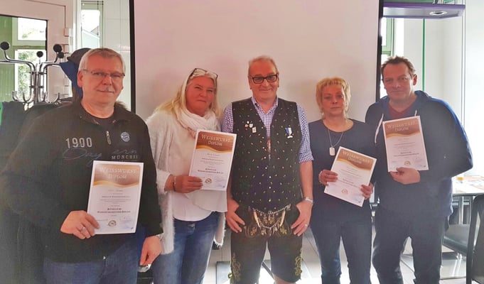 Seminarablauf “Alles über die Weißwurst”. Nach der Theorie wird dann ein Test absolviert und die Diplome verteilt. Zum Schluß folgt ein gemütliches, gemeinsames Weißwurstessen, wo Sie das erlernte auch gleich anwenden können.